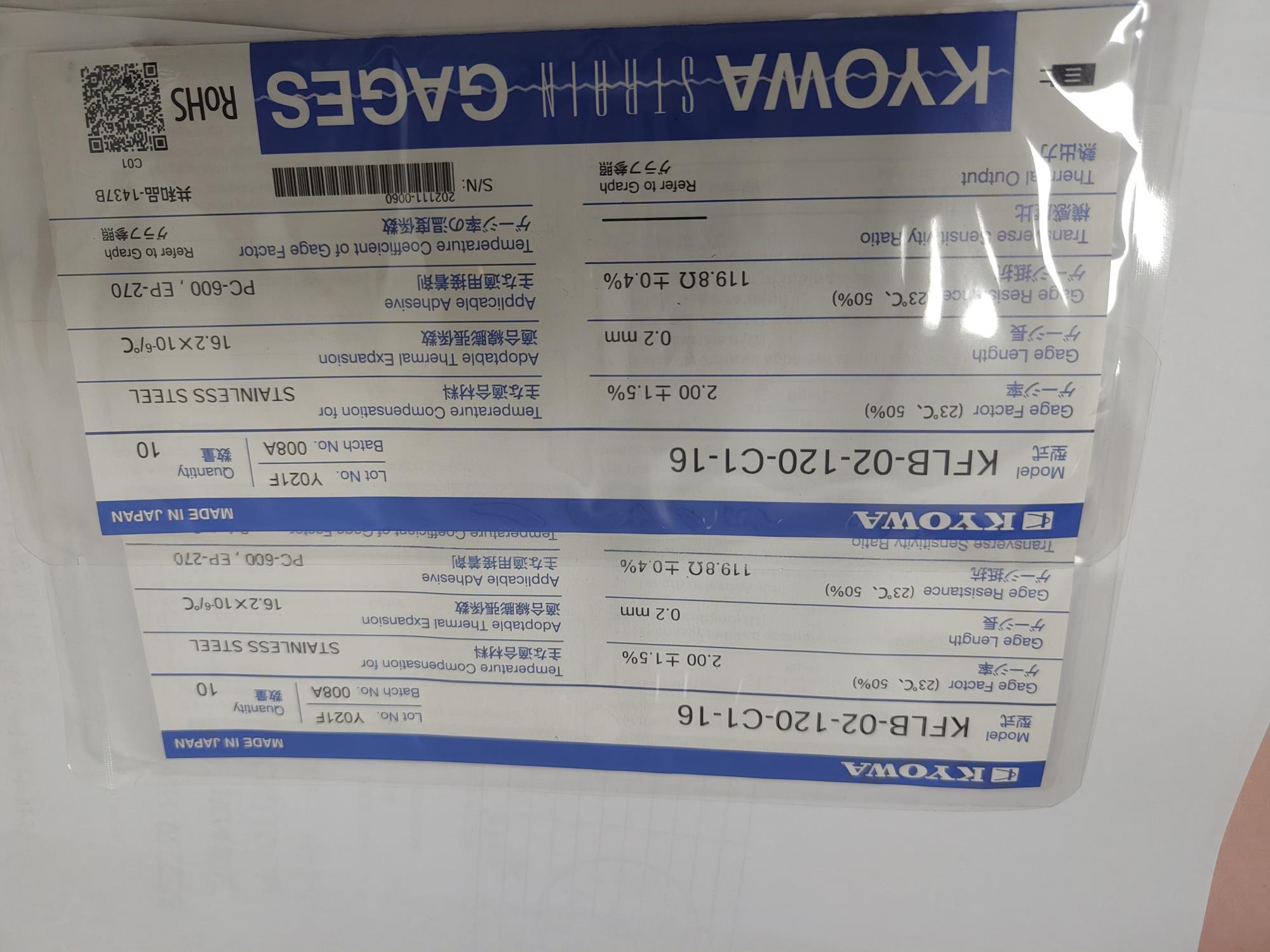 型號名稱 | 應變片(敏感柵) | 基底 | 線膨脹系數 |